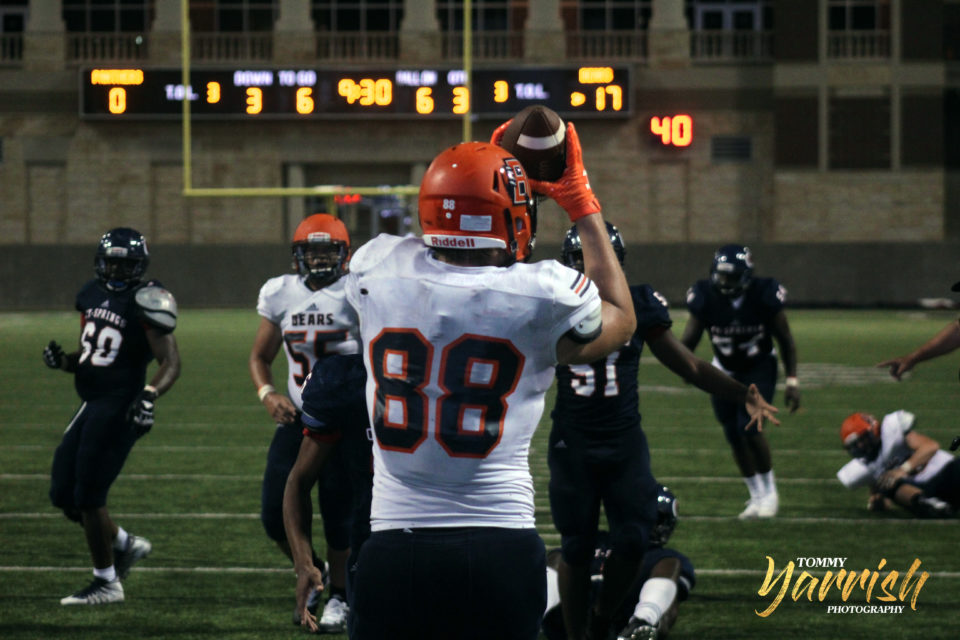 The Bears’ offense continued to put their foot on the gas against opposing defenses, as quarterback Conner Weigman had another stellar performance, throwing for 236 yards and four touchdowns. On the ground, Mason Culton had their only rushing touchdown from 19 yards out. But it was really the Bears’ defense that took it to the next level, earning their first shutout in school history. Defensive back Weston Cadena lead the team in tackles with 10, and the entire defense combined for 8 tackles for loss. Defensive end Brayden Amacker had five tackles to go along with a sack and a forced fumble as well.