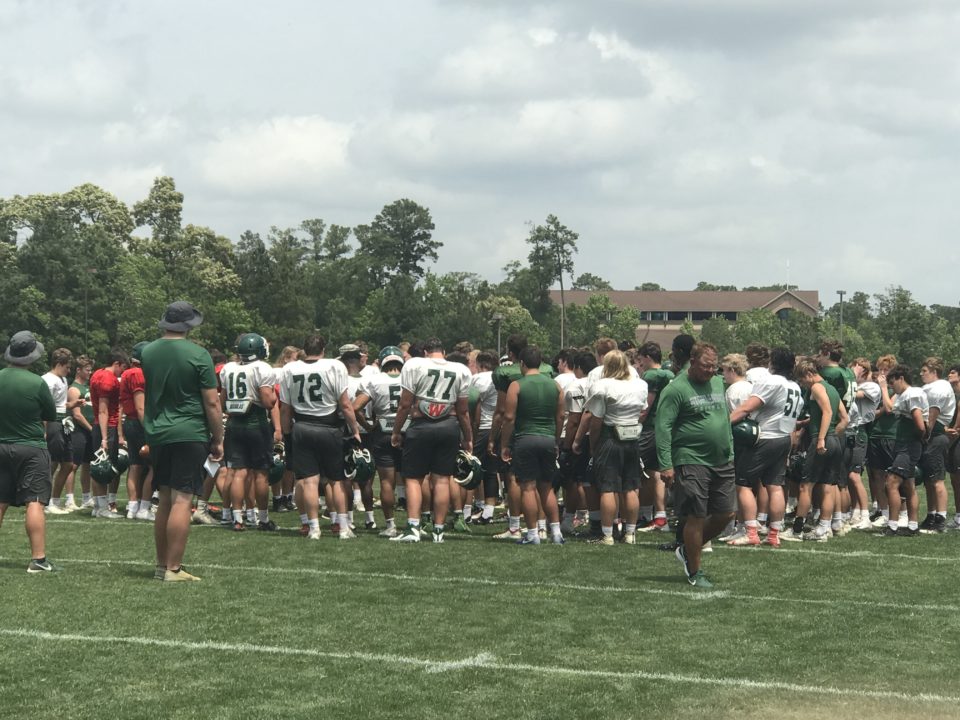 -2020 wide receiver Demond Demas was repping Texas A&M at practice and has shown no signs of backing off his pledge. He continues to show why he’s the best receiver in the state and top three in the country—his route running is unmatched and he cuts in and out of routes as smooth as anyone. His body control and ability to go up and get any ball put him over the top. Having moved from North Forest to Tomball, Demas should thrive because of the Cougars’ spread system and his long-time friendship and connection with quarterback Hunter Dunn.